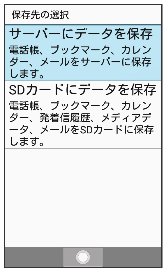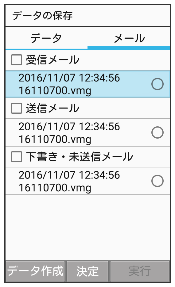 (データ作成)を押すと、本体のメールデータをSDカードに保存できます。