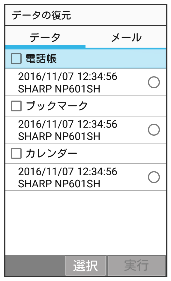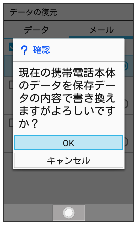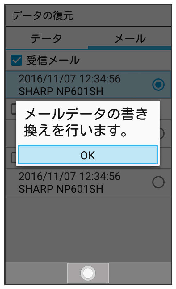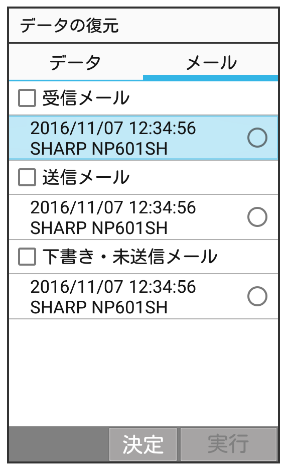 サーバーに保存したメールデータを本体に復元します。