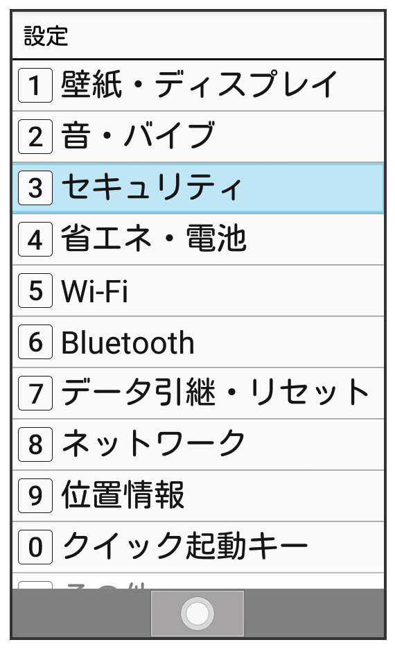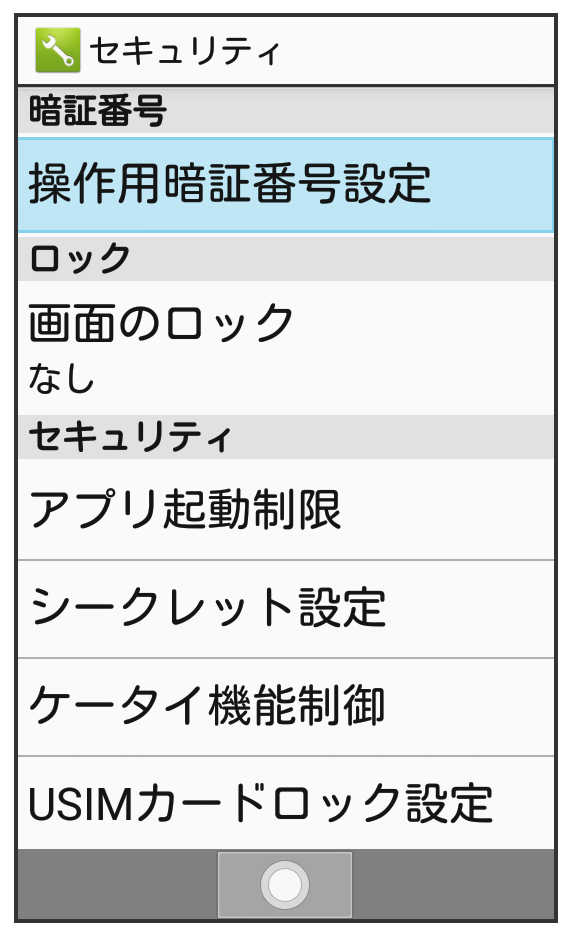 画面のロックや暗証番号など、セキュリティに関する機能を設定できます。設定できる項目は次のとおりです。