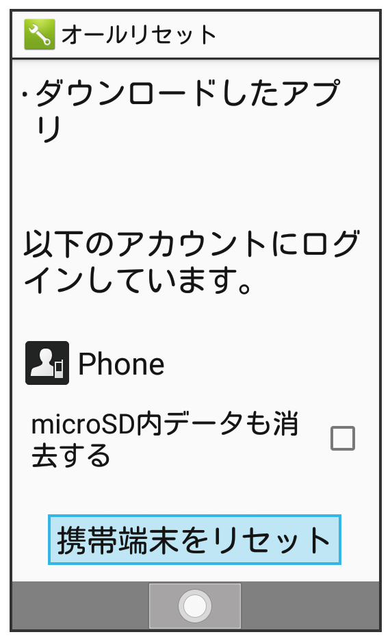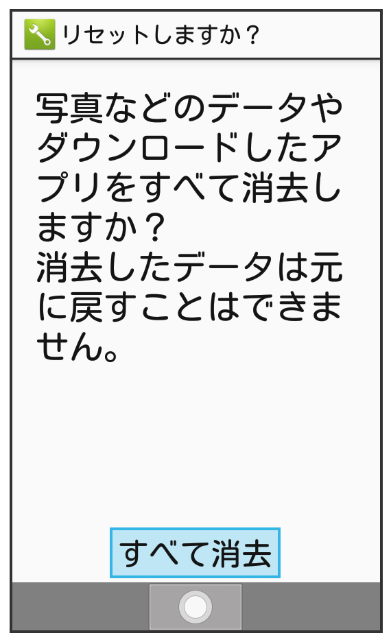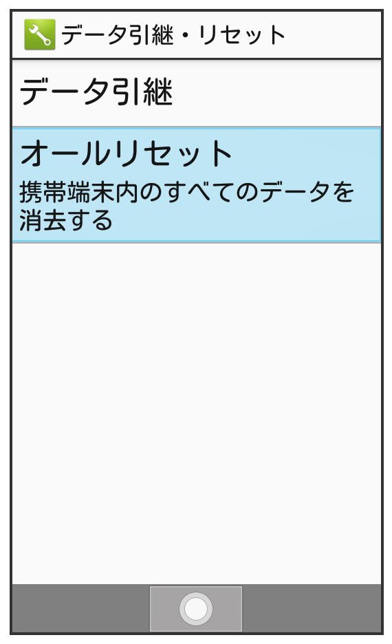 オールリセットすると、内部ストレージのデータがすべて消去されます。必要なデータは事前にバックアップをとることをおすすめします。