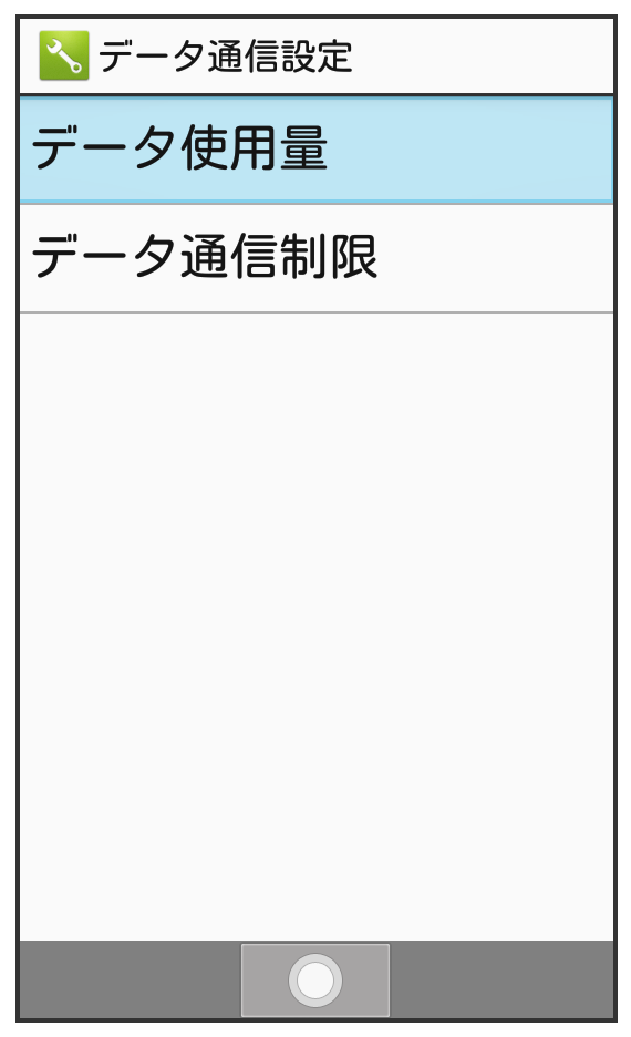 が表示され、上限になるとモバイルデータ通信を無効にした案内が表示されます。このときは、画面に従って操作してください。