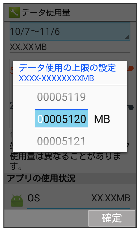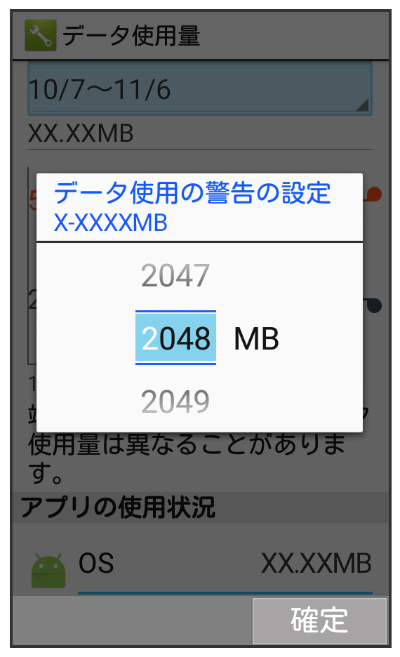 あらかじめ、データ使用量の上限と警告位置を設定しておけば、使用中に上限に近づくと、警告や制限案内を表示させることができます。