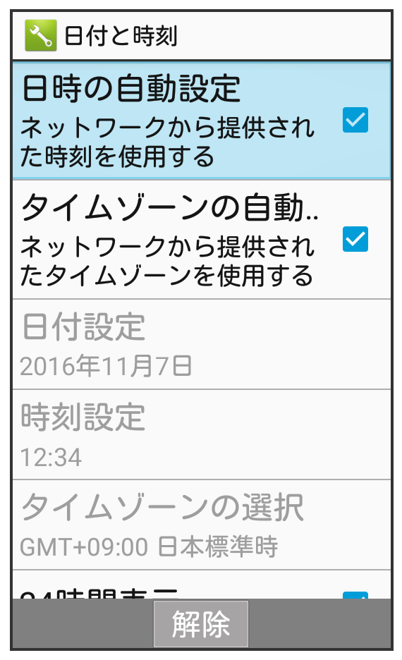 日付と時刻画面で時刻を選択- が無効のときに設定できます。