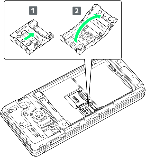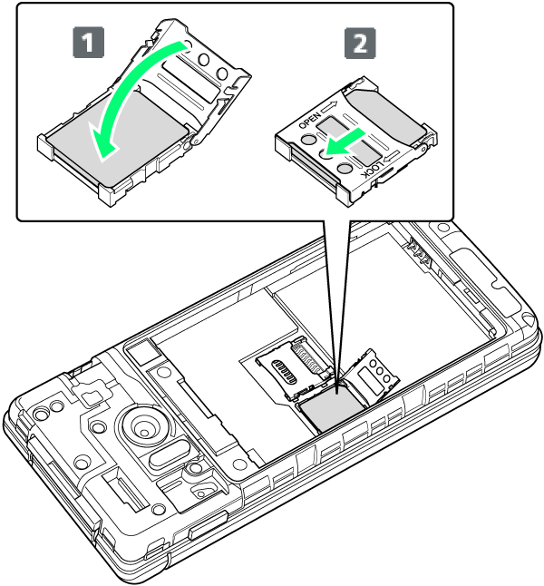 )、SIMカードスロットカバーをスライドさせてロックしてください(
