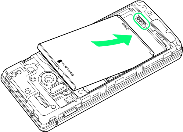 - 電池パックの先を合わせて、矢印の方向に取り付けてください。