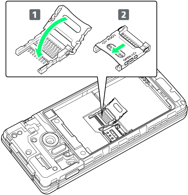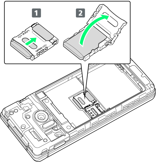 )、SDカードスロットカバーをスライドさせてロックしてください(