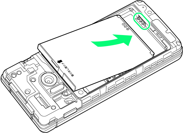 - 電池パックの先を合わせて、矢印の方向に取り付けてください。