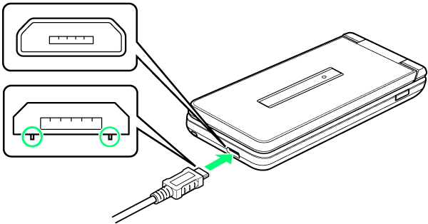 - 本機またはPC接続用microUSBケーブルが濡れている状態では、microUSBプラグを絶対に接続しないでください。
