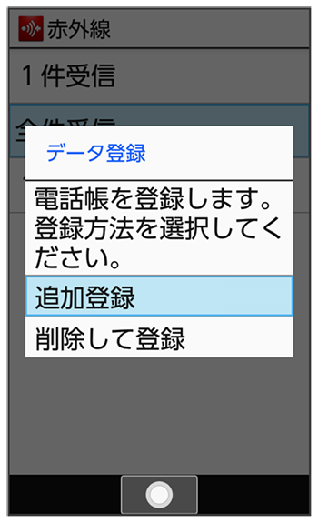 - 本機のデータを削除して登録するときは、と操作します。このときは、画面に従って操作してください。