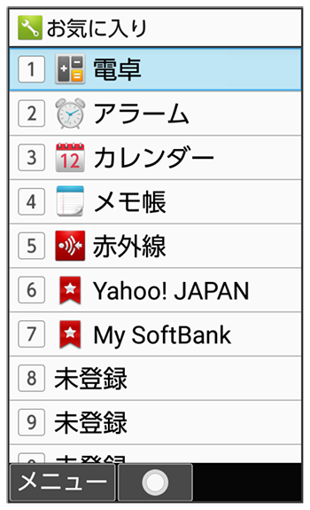 お気に入り画面で、番号を選択- 番号が「未登録」のときは、番号を選択