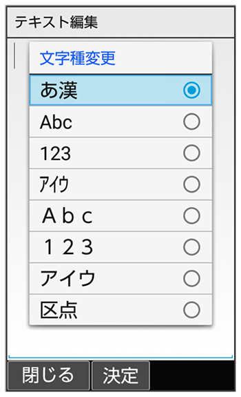 (半角カタカナ/半角英数字(小文字))が表示されます。