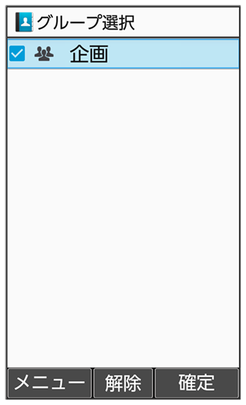 - グループを登録していないときは、グループ追加の確認画面が表示されます。このあと、と操作すると、グループの新規登録画面が表示されます。グループ名などを入力して