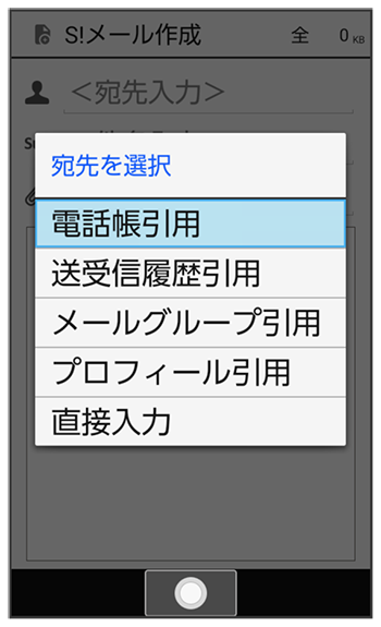 S!メール送信時に電話帳を利用して宛先を入力する方法を例に説明します。