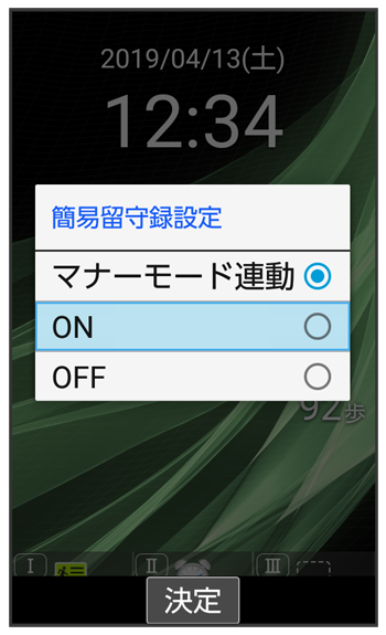 - に設定した場合は、マナーモードを有効にしているときに、簡易留守録が有効になります。