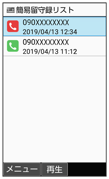 簡易留守録リストで用件を選択- 同様の操作をするたびに保護/解除を切り替えます。