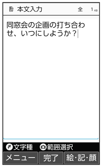S!メール作成画面で本文入力欄を選択こちらで検索できます