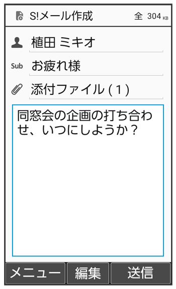 - と操作すると、プロフィール/電話帳/メモ帳を添付できます。