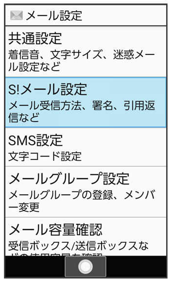 S!メール設定画面で/S!メールの送信画像サイズを設定する