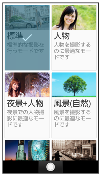 | 標準 | 標準的な撮影を行うモードです。 |
