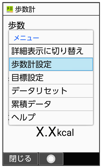 歩数計設定画面が表示されます。