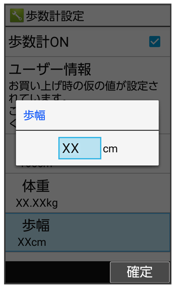 - 身長入力後、歩幅を自動で入力することもできます。