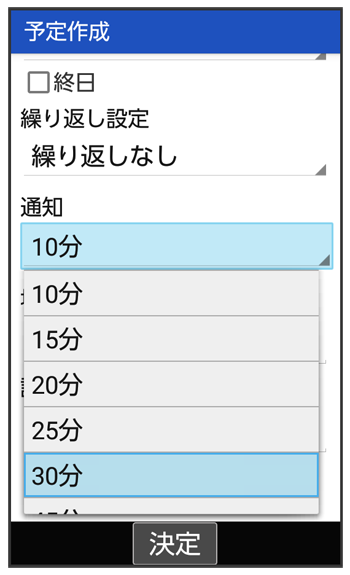 予定作成画面で繰り返し設定欄を選択場所/説明の登録をする