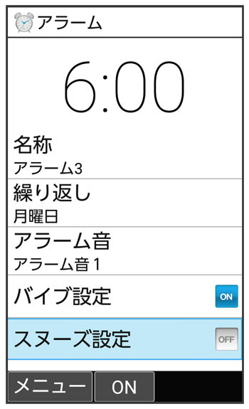- スヌーズ(設定した間隔でくり返しアラームが鳴る機能)も設定できます。