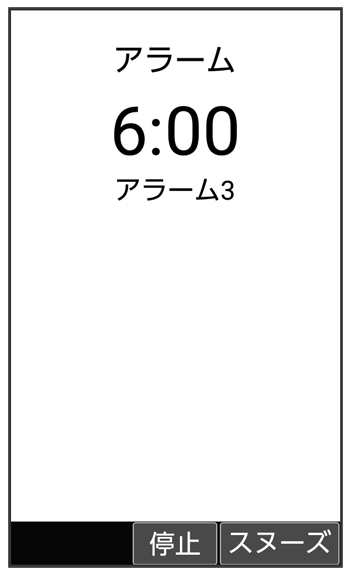 以外のボタンを押すとスヌーズ待機状態になり、設定した間隔で繰り返しアラームが鳴ります。