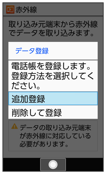 - 本機のデータを削除して登録するときは、と操作します。このときは、画面に従って操作してください。