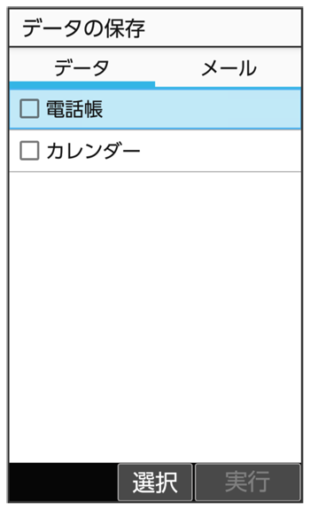(データ作成)を押すと、本体のメールデータをSDカードに保存できます。