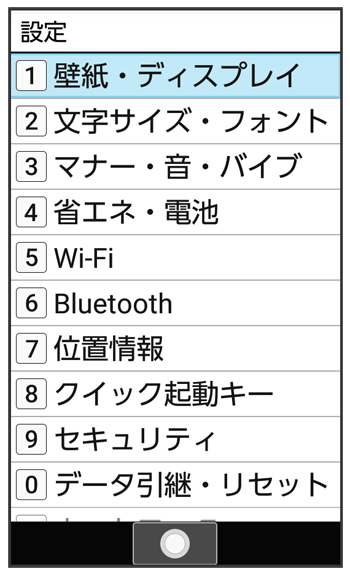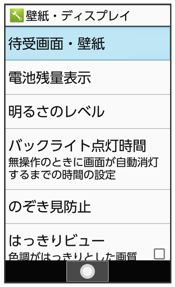 | 待受画面・壁紙 | 待受画面の壁紙や表示内容を設定します。 詳しくは、「待受画面の画像を変更する」を参照してください。 |