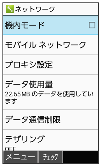 機内モードなどネットワークに関する機能を設定できます。設定できる項目は次のとおりです。