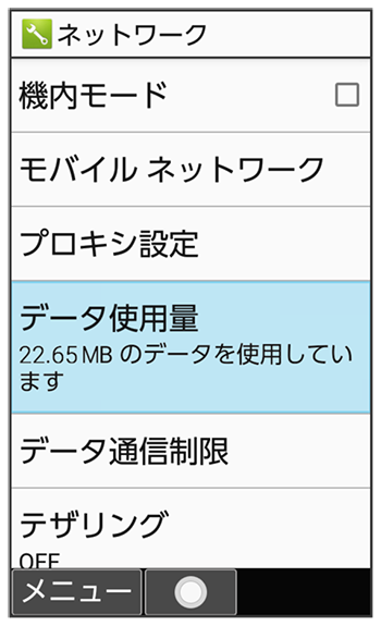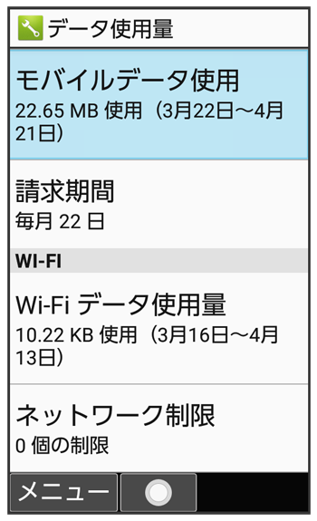 データ使用量画面が表示されます。