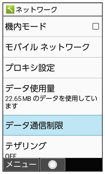 データ通信制限画面で制限中の機能を選択予期せぬモバイルデータ通信をする機能のインストール時に確認するかどうかを設定する