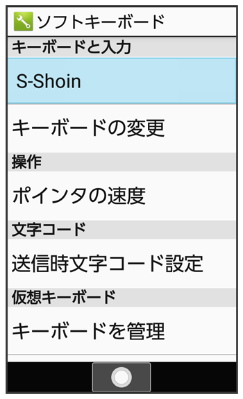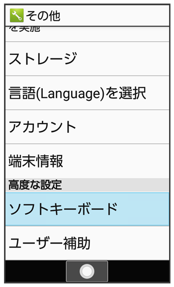 ソフトキーボード画面で入力方法を選択- あらかじめ、で利用する入力方法を追加しておいてください。