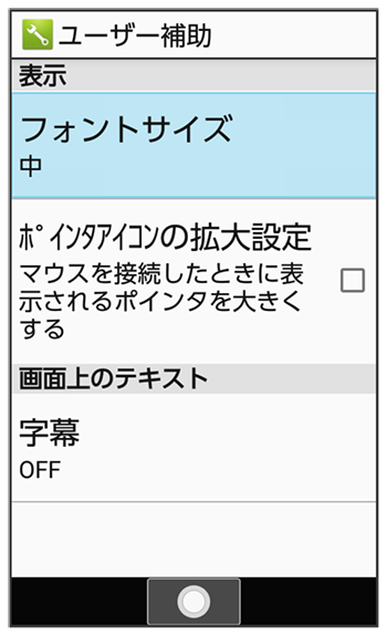 | フォントサイズ | 画面に表示されるメニューなどの文字サイズを設定します。 |