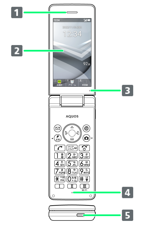 | 送話口/マイク | 自分の声を通話相手に伝えたり、音声の録音時に使用したりします。 |