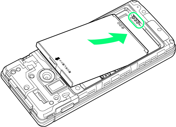 - 電池パックの先を合わせて、矢印の方向に取り付けてください。