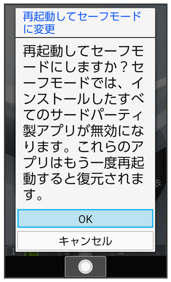 - セーフモード中は、機内モードに設定されます。セーフモードを解除しても、機内モードの設定が維持されますのでご注意ください。
