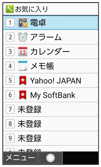 お気に入りに登録されている機能のリストを表示して、そこから機能を呼び出します。