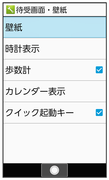 待受画面・壁紙設定画面で/待受画面にクイック起動キーを表示するかどうかを設定する