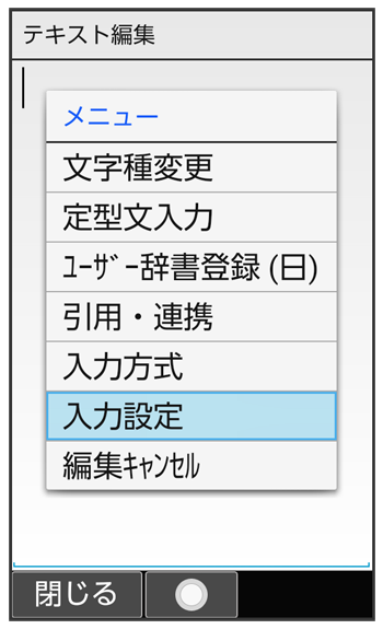 | 入力補助・変換 | 予測変換、自動カーソル移動などを設定できます。 |