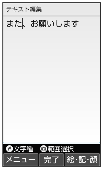 文字入力画面で入力した文字の文末で