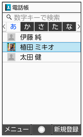 電話帳画面で登録する連絡先を選択/連絡先詳細画面を表示検索方法を変更する