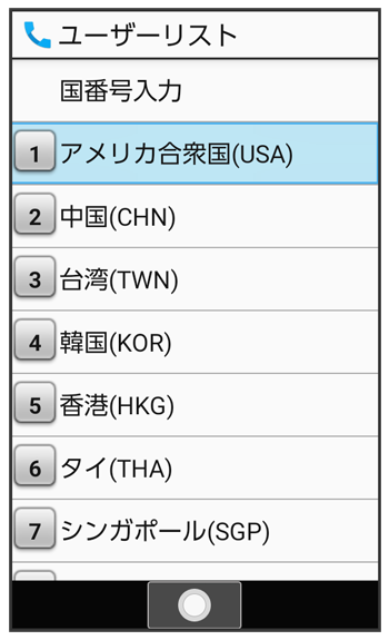 国番号リスト画面が表示されます。