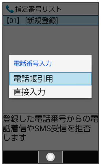 着信拒否する電話番号が登録されます。