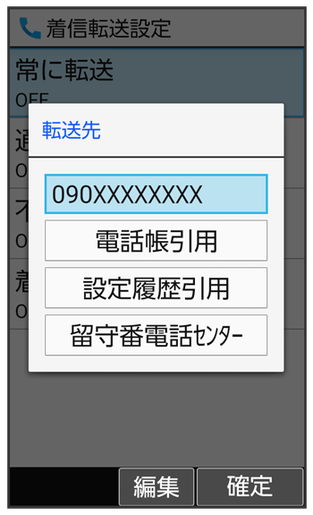 - 以前に転送先として設定した電話番号はと操作して入力できます。