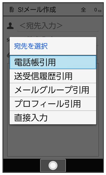 S!メール作成画面で本文入力欄を選択こちらで検索できます