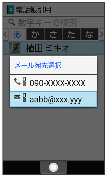 - と操作すると、メールグループを選択して、メールグループに登録されたすべての宛先を送信する宛先に設定できます。
