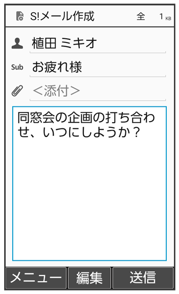 下書きはに保存されます。下書きのS!メールを表示すると、内容を再編集して送信できます。